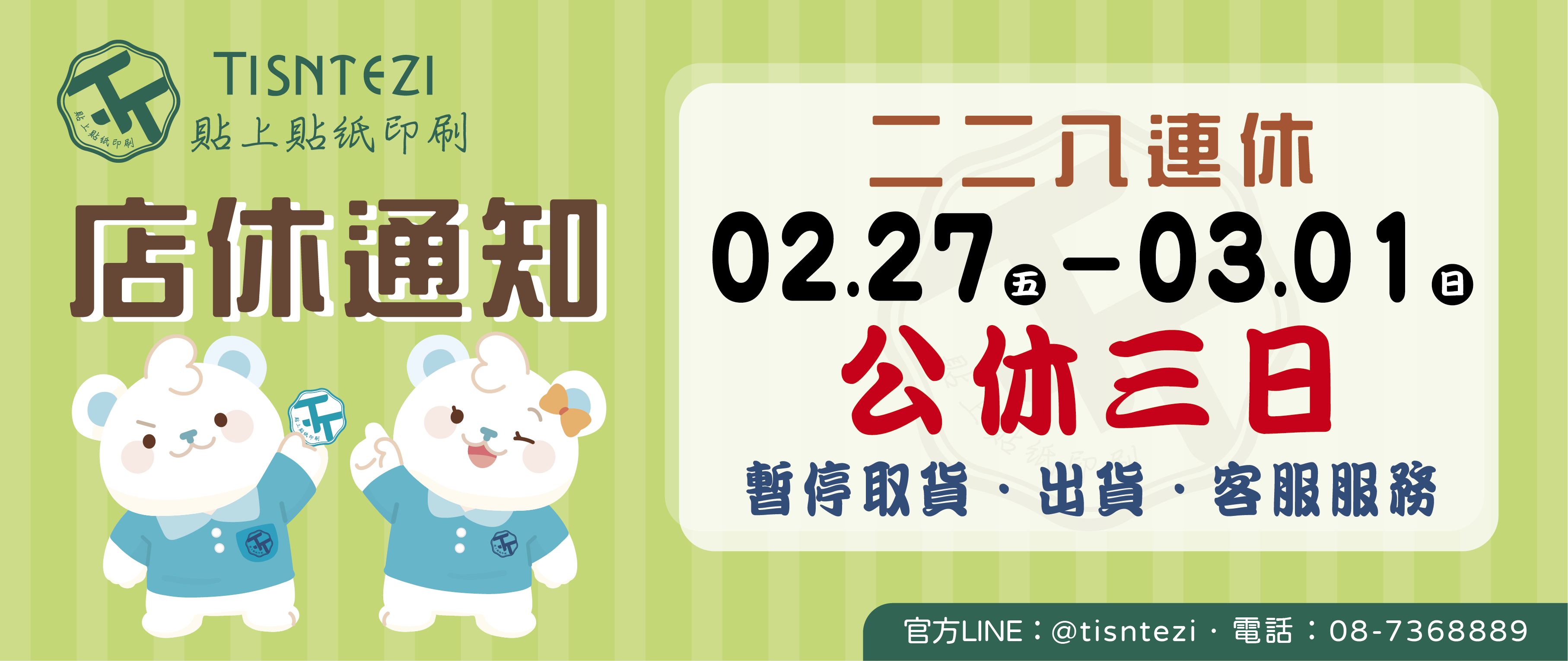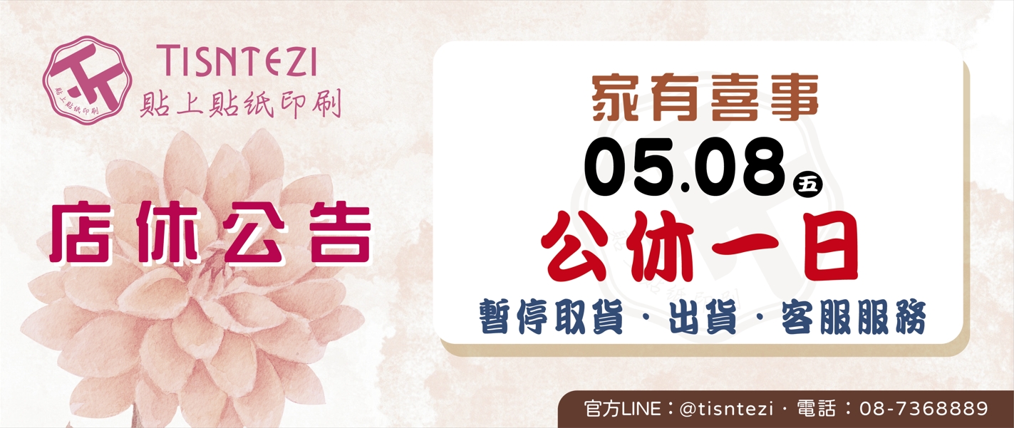 貼上貼紙印刷 TISNTEZI Printing | 營業時間 週一~週五 8:30~12:00 13:30~18:00 例假日休息 聯絡我們 公司電話:08-7368889 客服#13 美工#11、#12 特殊估價#10 公司傳真:08-7385473 E-MAIL:tisntezi@gmail.com LINE 客服 ID: @tisntezi Facebook: https://www.facebook.com/tisntezi 門市地址:屏東縣屏東市豐年里豐榮街95號 工廠地址:屏東縣屏東市豐年里廣東路448號 | |